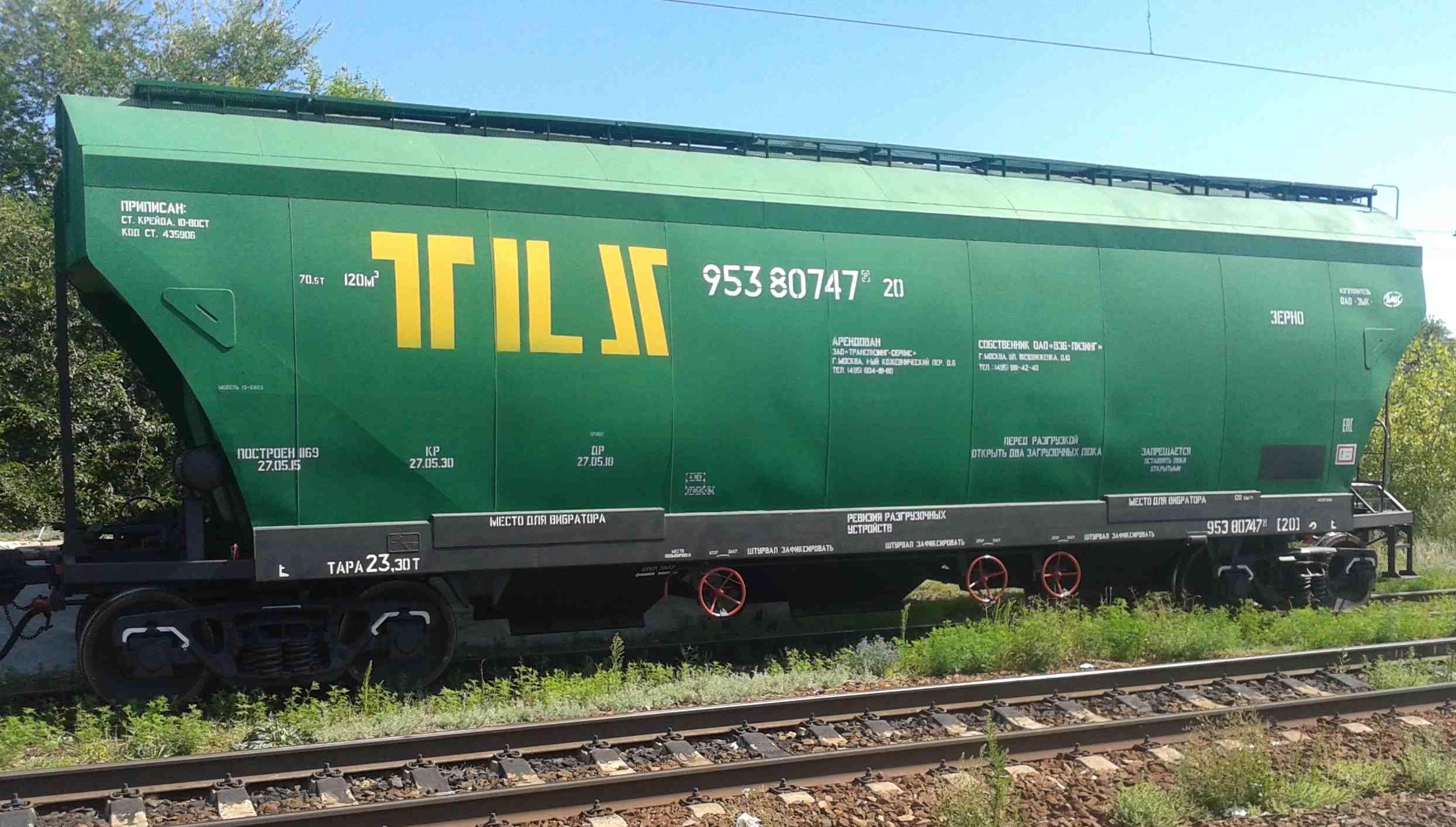 Высота вагона от уровня головок рельсов до крышек загрузочных люков, мм